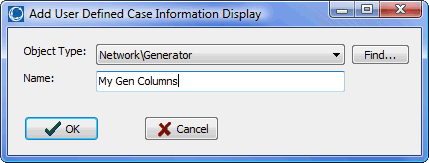 To define a User-Defined Case Information Display, right-click on the Model Explorer: Explore Pane. and choose Insert User-Defined Case Info. On the dialog which appears click Find... to change the Object Type and then enter a Name for the new display.
