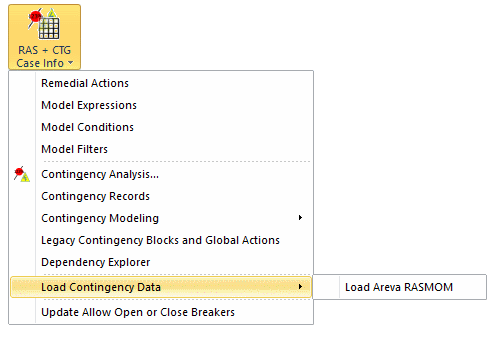 This dropdown provides easy access loading files containing information for running contingencies. The only option is to load the Areva HDBexport file containing data from the RASMOM database.