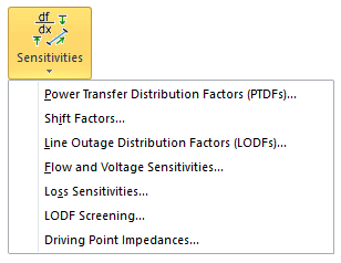 The Sensitivities Menu contains a list that provides access to all the sensitivity calculations available.
