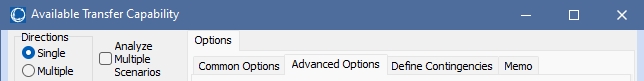 The Options page is available on the Available Transfer Capability dialog. This page is subdivided into the following sub-tabs: