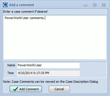 Checking the Prompt for comment when saving case checkbox will force saving the case with comments by popping a dialog every time a case is saved. The portion of the description that is saved with the case varies with case type. The Add a comment dialog is shown below: