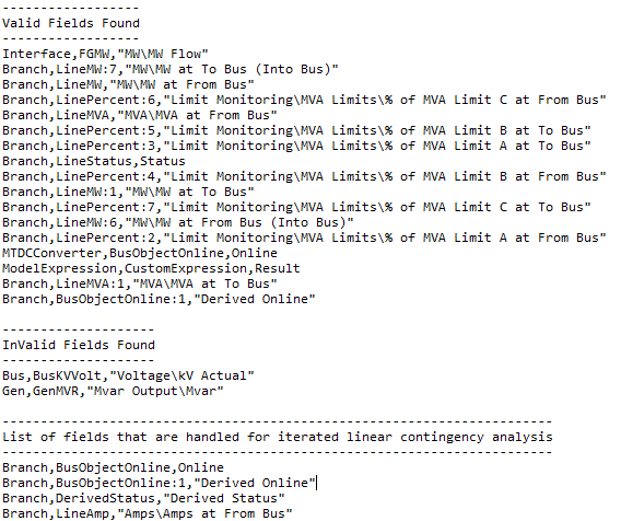 A tool has been added to provide a summary of fields that are handled and which ones are in use by conditional checks or contingency actions that are not handled. The local menu of the Contingencies table contains the Verify Contingencies for Iterated Linear Analysis tool that will process the current list of contingencies, Remedial Actions, and Global Actions to determine which fields are and are not handled. A user-specified text file will store the results.