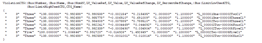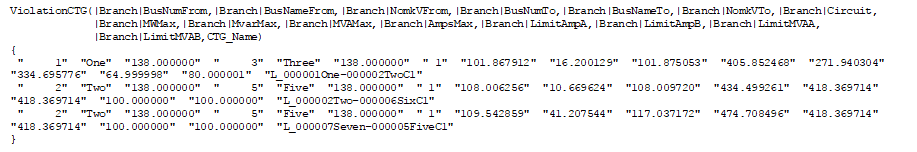 The branch file looks like the following. The ViolationCTG fields that are set to Restrict = Bus do not appear in this file, but do appear in the bus file.