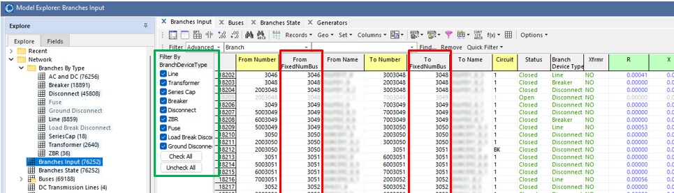 SubNodeNum : On a bus table this field is also shown which can be edited and is described in Fixed Number Bus (FixedNumBus) Features.