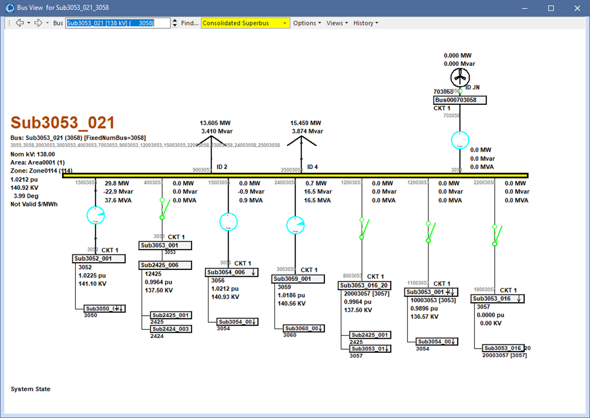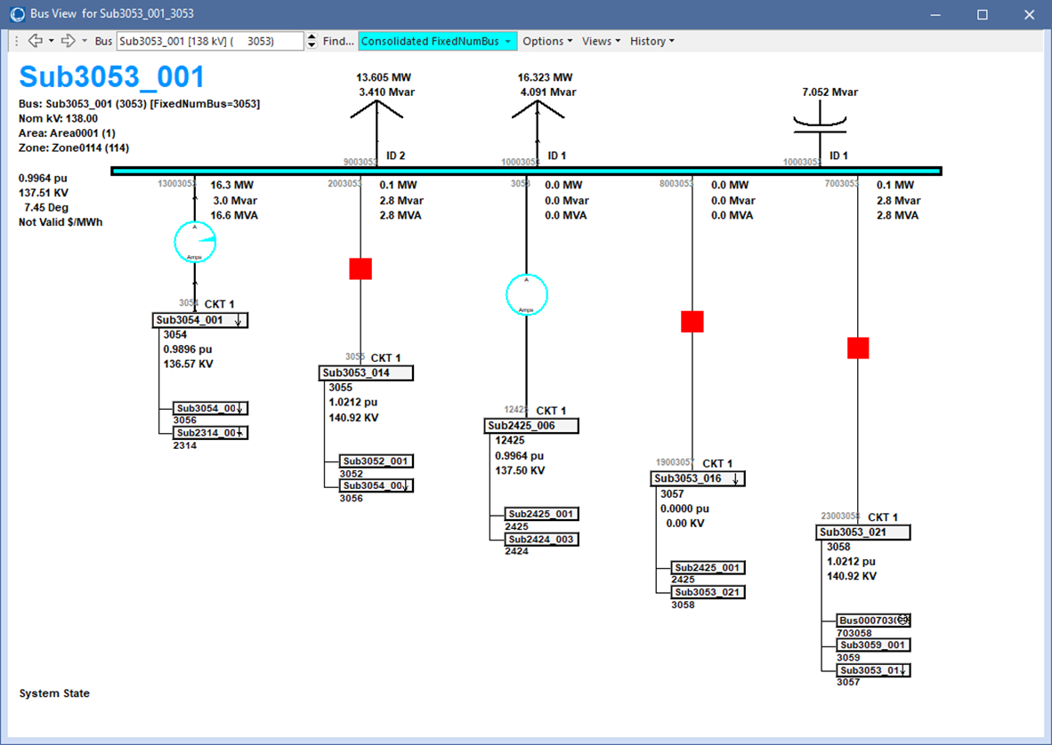 Bus View onelines are very useful for navigating the topology of the power system model. These are described generally in the Bus View Display help topic. There is a dropdown with 4 choices