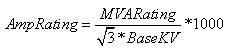 For reference, note that the amp rating of a line is derived from the MVA rating using the formula