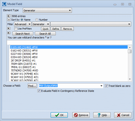 Added in Version 19, build on December 18, 2015. The check box Evaluate Field in Contingency Reference State will impact how the Model Expression behaves when evaluated during the contingency analysis solution. This can impact the behavior when the model expression is used as part of a Contingency Element, a ModelConditionCondition, an advanced filter, Custom Monitor, or as part of a Injection Group participation point calculation when evaluated for use during contingency analysis.