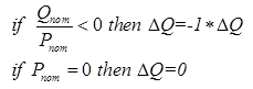 ΔQnom is calculated from ΔPnom based on the selection of the option on how reactive power should change during the ramping as described in the previous section.