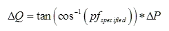 Maintaining a constant MW/MVAR ratio implies a sign convention that is lost when applying the arctan function to the ratio. An additional check is done to make sure that the calculated ΔQ is in the correct direction (maintains the correct leading or lagging power factor).