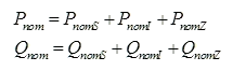 This option will change the load at a given load such that the ratios of the ZIP components do not change during the load adjustment. The existing ZIP ratios at a load are determined based on the present nominal load prior to any change due to the transfer. The existing total nominal power (Pnom,Qnom) at a load is the sum of the components: