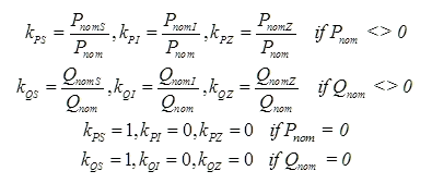 The constant current and constant impedance components are a function of voltage and the nominal values specified for these components. Because of this, it becomes important to determine the load changes for the components based on nominal voltage and then apply these changes to the nominal components.
