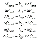 The resulting change in nominal load for each load component at a load is then the product of the ratio of each component and the total nominal power change: