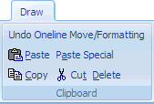 The Clipboard ribbon group contains options for copying and pasting oneline objects while you are in Edit Mode. It also provides access to the Undo drawing feature. This ribbon group is on the Draw ribbon tab. The Group is shown below.