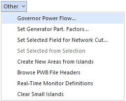 Governor Power Flow: Opens the Governor Power Flow Dialog.