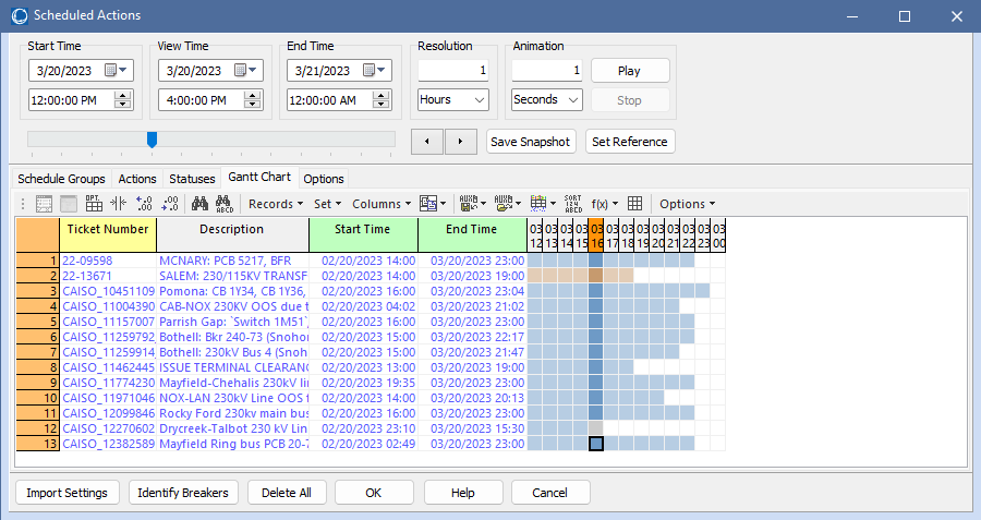 This tool allows the user to convert an Open or Close Breakers action into a set of individual Open/Close actions. These new actions can be identifies with the Origin field -- if the field has a value of "User", the action was user generated; if "Added", it is a breaker action added by the identification process; if "Extra", the object was identified as also being isolated/connected by breaker actions (these actions by default have their Allow Active field set to No, so they are present only for informational purposes)