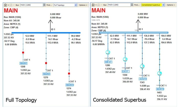 The associated full-topology bus view and the consolidated superbus view for the above model is shown below: