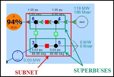 A Subnet is a group of buses connected through switching devices or other very low-impedance branches devices regardless of their open or closed status. Subnets are bounded by transmission line and transformer terminals. Subnets on a system hence do not depend on the status of breakers, but only on the presence of devices. Subnets do not change unless equipment is added or removed from the physical model.