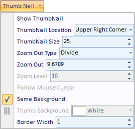 The Thumbnail View Options quick menu provides access to most of the options contained in the Thumbnail View Options dialog in an individual manner through menu commands. Select the Thumb Nail option from the Oneline Options ribbon group on the Options ribbon tab to access the menu.