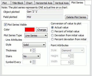 Select whether the plot series should be shown by a Line Series or a Point Series. If shown by a Point Series, the Point Attributes options will be enabled allowing selection of the style and size of the points.