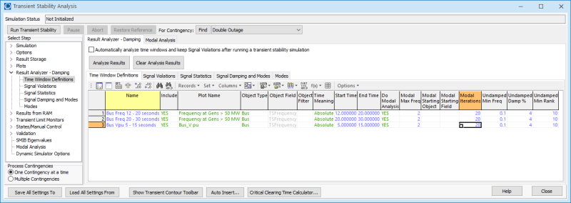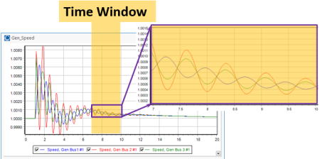 This analyzer allows you to do 2 types of calculations on your transient stability results over a time window which you define.