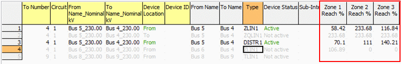 Finally, in the Transient Stability Model Explorer, for Line Relay Models there are three extra columns showing the Forward Reach Percentage for Zones 1, 2, and 3.