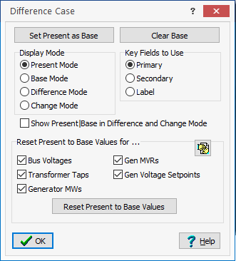 - On the Difference Case Dialog, click the button labeled Set Present as Base. This stores the current operating point as the Base.