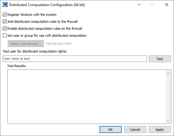 - To quickly check the configuration of a given machine, use the Distributed Computation Configuration utility (DistCompCfg.exe in the installation directory of the Simulator version you would like to configure for Distributed use).