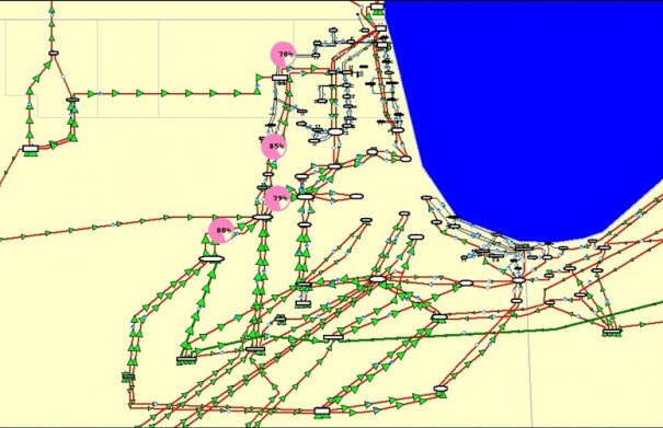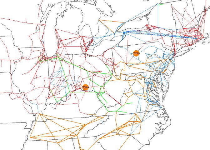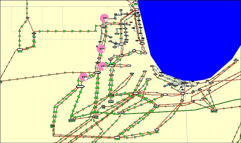 - The size of the pie-charts on this diagram varies with percent line flow for the measured line. Additionally, the pie-charts do not appear until a user-specified warning level is reached