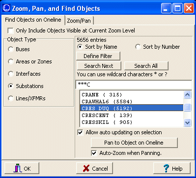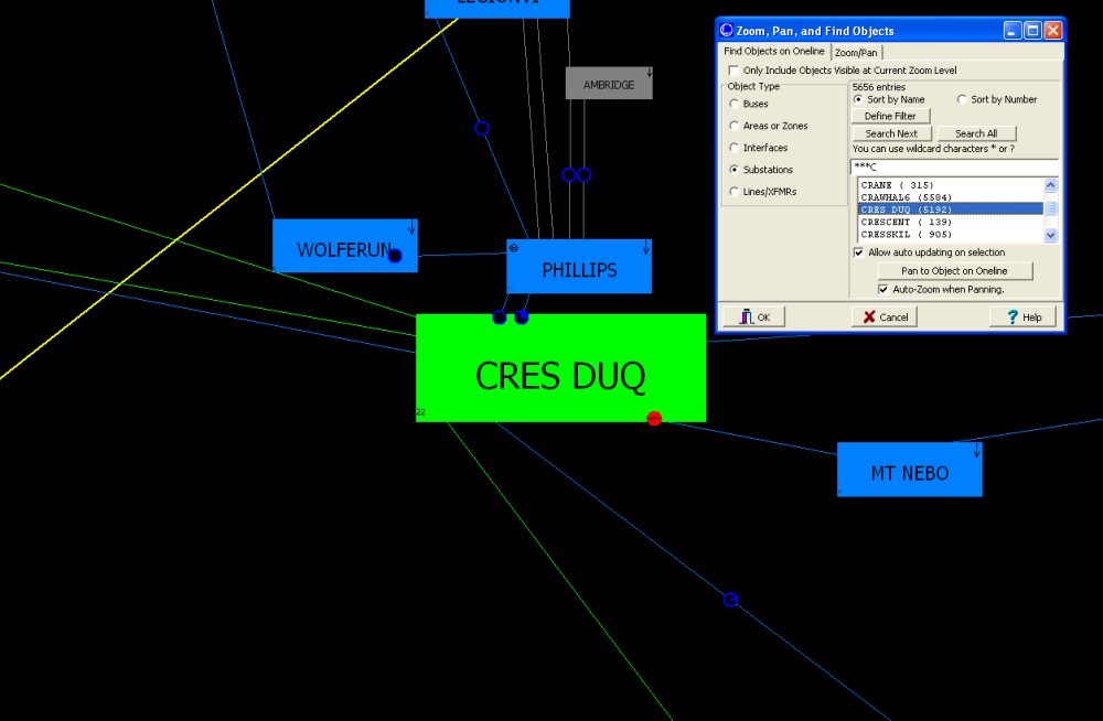 - Same Wide Area Substation Diagram, zoomed in to the Cres Duq substation located via the Zoom, Pan, Find dialog.